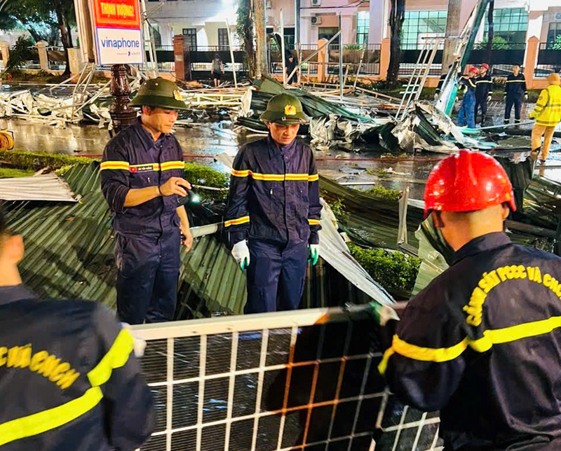3. Lực lượng Cảnh sát PCCC và CNCH Công an tỉnh Nghệ An khắc phục hậu quả cơn bão số 3