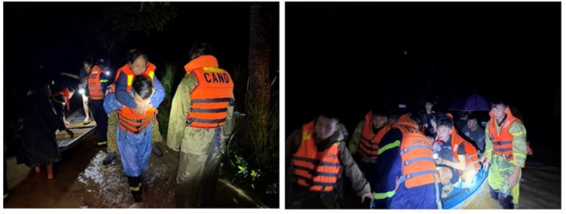 Tại khu vực đê sông Mã, nhiều hộ dân, đặc biệt là những gia đình có người già, trẻ nhỏ và phụ nữ, đã được lực lượng Cảnh sát PCCC và CNCH sử dụng xuồng cano tiếp cận các khu vực ngập úng hỗ trợ di chuyển đến nơi an toàn. Song song với việc sơ tán người, CBCS Cảnh sát PCCC và CNCH đã giúp người dân di chuyển tài sản, vật dụng sinh hoạt thiết yếu như tủ lạnh, quạt, bếp, cùng vật nuôi, ra khỏi vùng nguy hiểm.