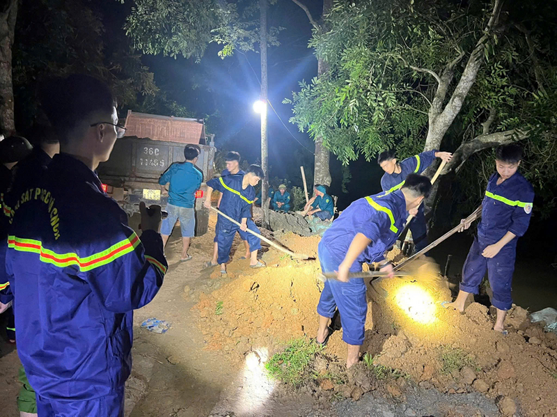 Kết quả: Sau hơn 4 giờ không ngừng nghỉ, công việc hộ đê cơ bản hoàn thành, tuyến đê được gia cố vững chắc, bảo đảm an toàn tạm thời trước tình hình mưa lũ tiếp diễn.