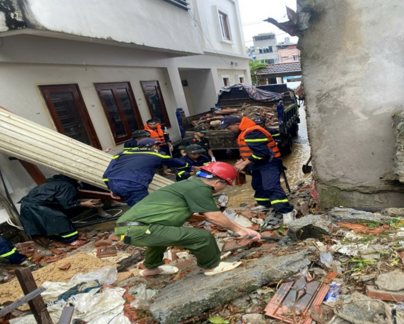 Tham gia hỗ trợ người dân khắc phục hậu quả nhà bị sập tại phường Trần Phú, thành phố Hà Giang, tỉnh Hà Giang (cũ)