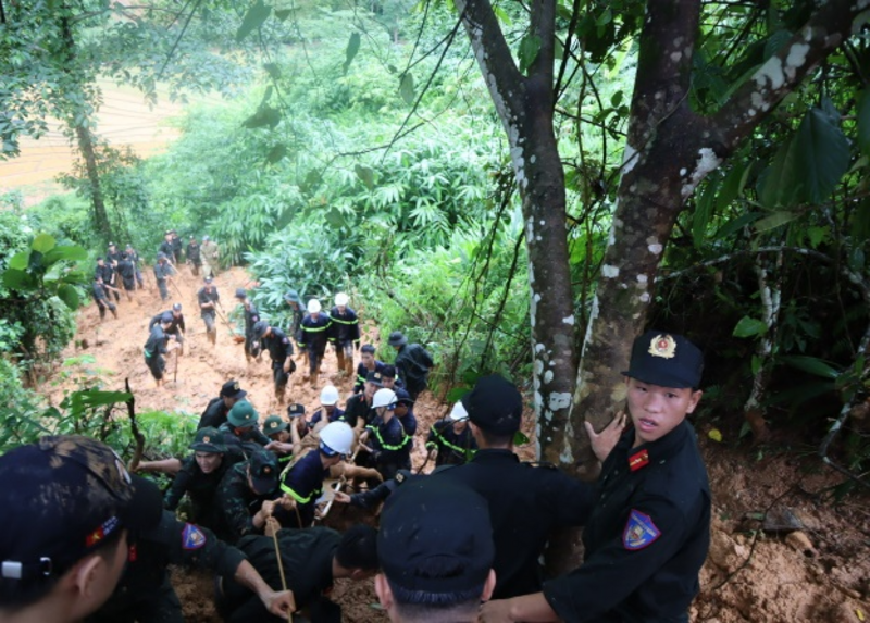 Cán bộ, chiến sĩ Phòng Cảnh sát PCCC và CNCH (Công an tỉnh Hà Giang cũ) tham gia Công tác CNCH vụ sạt lở tại huyện Bắc Mê làm 11 nạn nhân tử vong, 04 nạn nhân bị thương