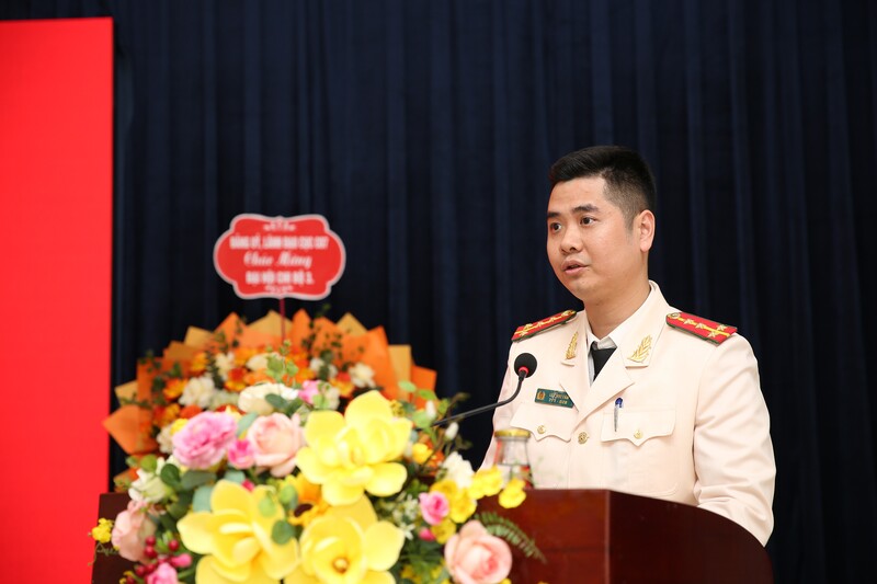 Thay mặt Đoàn chủ tịch Đại hội, Trung tá Lê Minh Hải, thay mặt Đoàn Chủ tịch đã phát biểu lĩnh hội và xin hứa sẽ tiếp tục triển khai thực hiện tốt các ý kiến chỉ đạo của Đồng chí Bí thư Đảng ủy, Cục trưởng trong nhiệm kỳ 2025 - 2027.