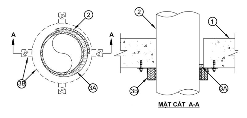1. Sàn bê-tông cốt thép dày 150mm; lỗ mở hình tròn đường kính 110 mm