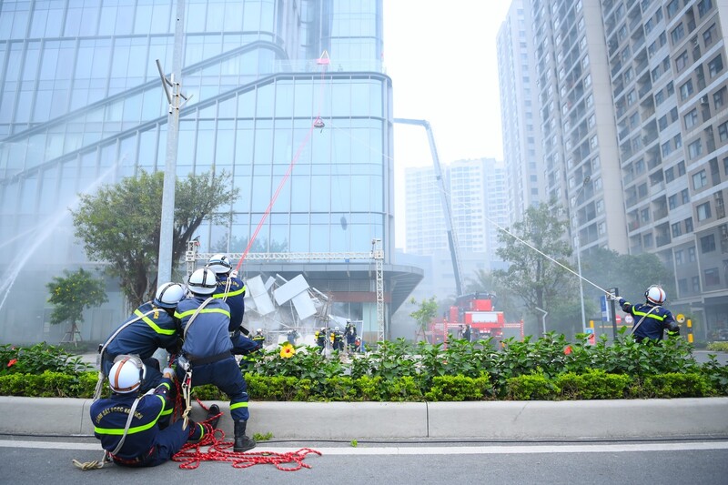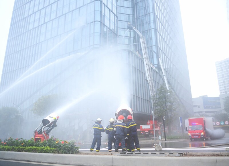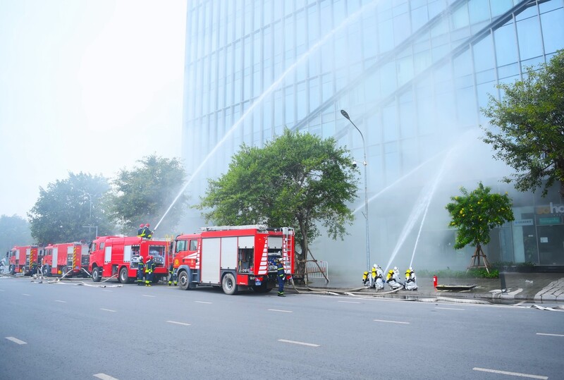 Diễn tập phương án chữa cháy, cứu nạn, cứu hộ tại tòa nhà cao tầng trên địa bàn TP Hà Nội