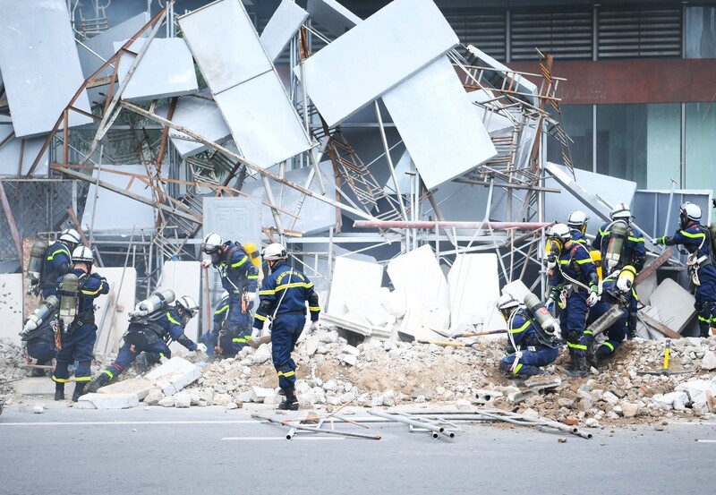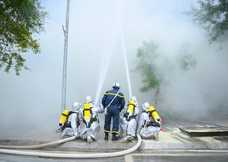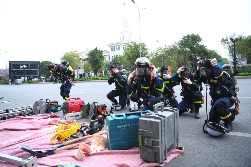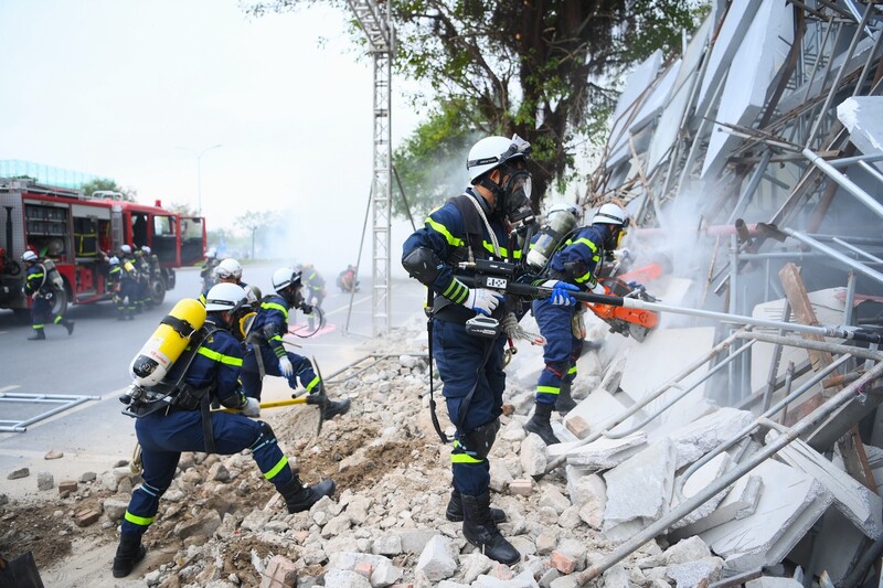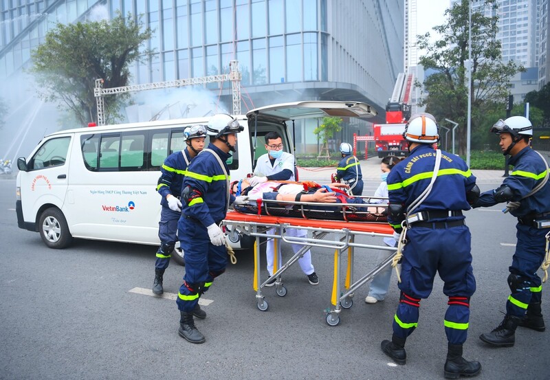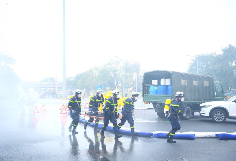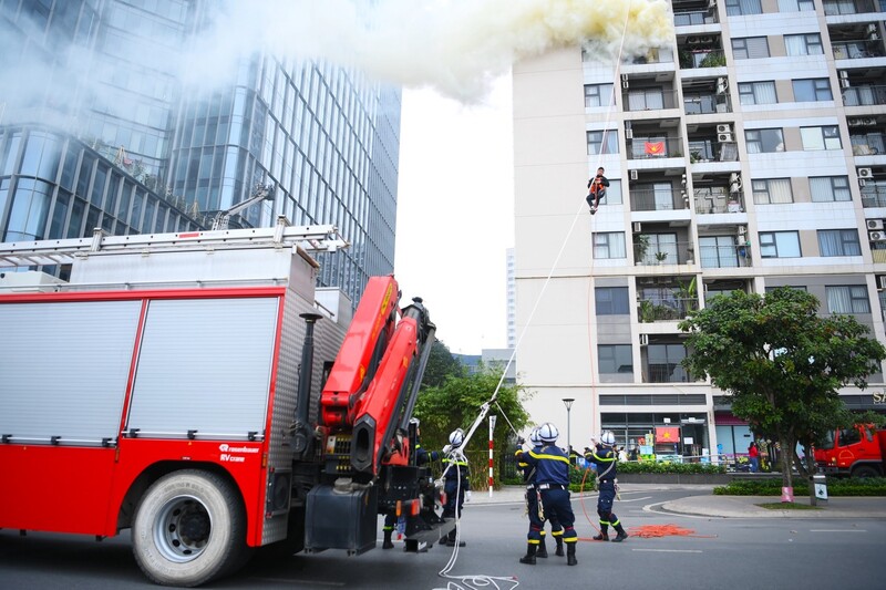 Đồng thời, nâng cao khả năng vận hành cơ chế chỉ huy, điều hành phối hợp hiệp đồng tác chiến giữa các lực lượng, phương tiện tham gia xử lý tình huống cháy, nổ, sự cố, tai nạn tại nhà cao tầng, đông dân cư. Qua đó, đánh giá hiệu quả thực tế về tính năng, tác dụng của các loại phương tiện, thiết bị CC, tìm kiếm CNCH hiện có; cơ chế vận hành hệ thống thông tin liên lạc và công tác hậu cần phục vụ CC, CNCH…